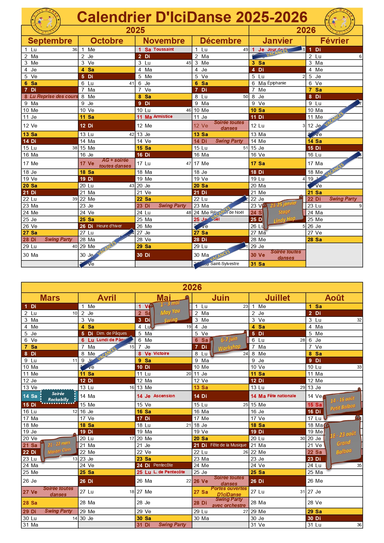 Au programme ? Swing: Balboa et Lindy Hop et Shag, Danses de salon: chachacha, tango, rumba, paso doble, valses, quickstep, samba et... bien sûr du Rock