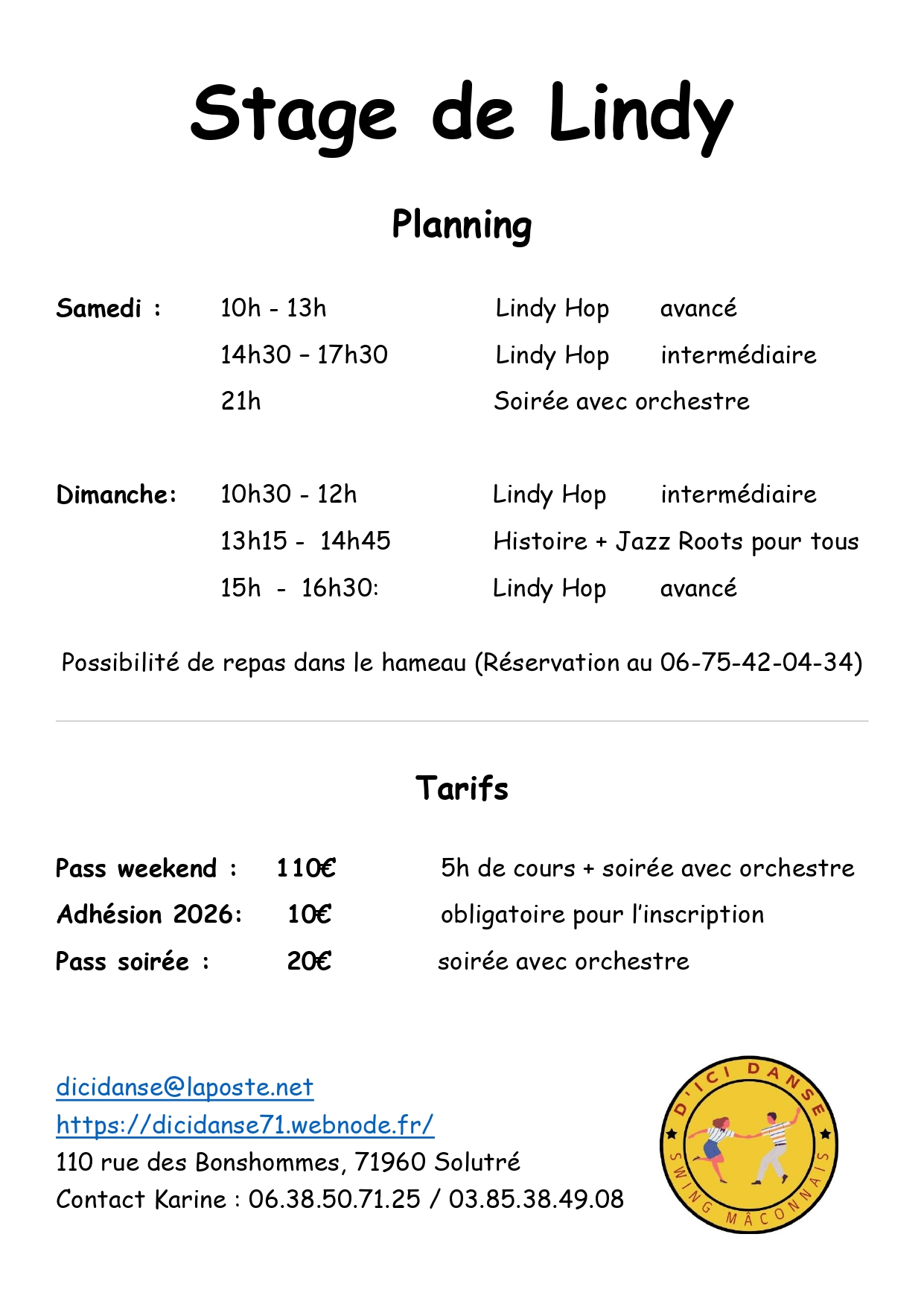C'est à La Grange du Bois, en face de la Roche de Solutré, qu'est née l'association D'iciDanse. A l'origine il y avait Karine avec quelques passionnées. Depuis, l'équipe s'est agrandie et c'est avec le même enthousiasme que nous vous accueillons, animés par le désir de faire découvrir la danse et tout ce qu'elle peut apporter de joie et de partage.